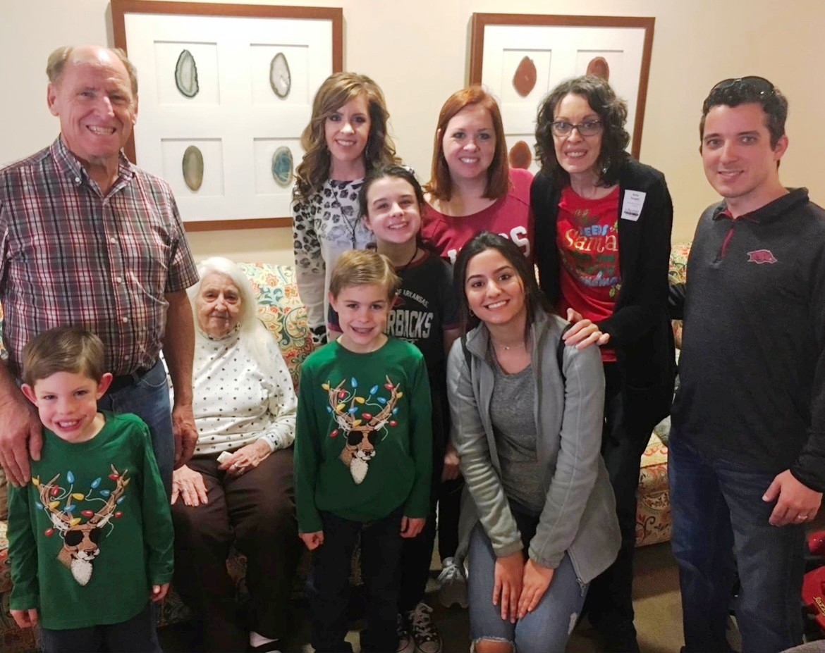 She is survived by two sons and daughters-in-law, Jim (Betty) Sargent and Tom (Debria) Sargent of Strickler, Arkansas; five grandchildren, John Sargent, Jr. of Strickler, Arkansas, Jason (Emily) Sargent of Owensboro, Kentucky, Cari (Mark) Burnett of Farmington, Arkansas, Libby (Wyatt) Wagner of Tulsa, Oklahoma, and Russall Sargent of Strickler, Arkansas; ten great grandchildren, Sierra (Bryan) Davis, John (Alexis) Sargent, Michael (Katie) Sargent, Matthew (Audrey) Sargent, Calloway Burnett, Wyndon Wagner, Weston Wagner, Mary Francis (Joseph) Boarman, Adaline, Fulkerson, and Sophia Fulkerson; six great-great grandchildren, Vivienne, Jackson, Hudson, Hazel, Giovanni, and Thomas; and a host of nieces of nephews.