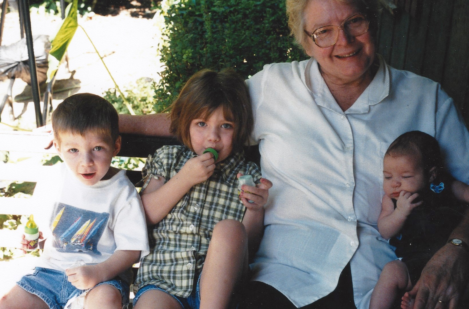Survivors include her daughter Ruth H. Poynor; grandchildren Karyn Walker (Adam) and Jack Poynor (Autumn); her grandchildren by Ronita: Shelly Thomas (Alex), Will West, and Grace West; her daughter Rebecca E. Stipe (Richard); grandchildren Elisabeth Richerson (Jacob), and Emily Stipe; her son Harley F.D. Petty (Vanessa); grandchildren Victoria Petty, Alexandria Petty, Lawton Petty, Chloe Petty, Owen Cowling, Nathan Cowling and Lily Cowling; eleven great-grandchildren; three siblings Sara A. Brooks, Owen D. Miller, and T. Jack Miller; and one sister-in-law Blanche Johnstone.