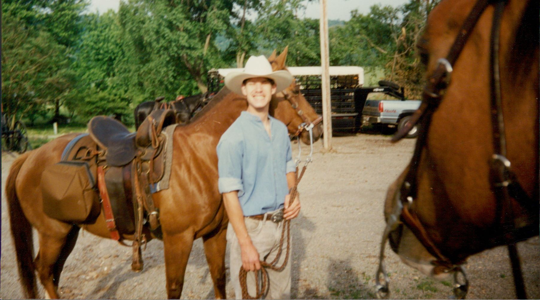 Dean loved working on the farm with all the horses and riding on the trails with friends, and he enjoyed going to the Little Opry in West Fork.