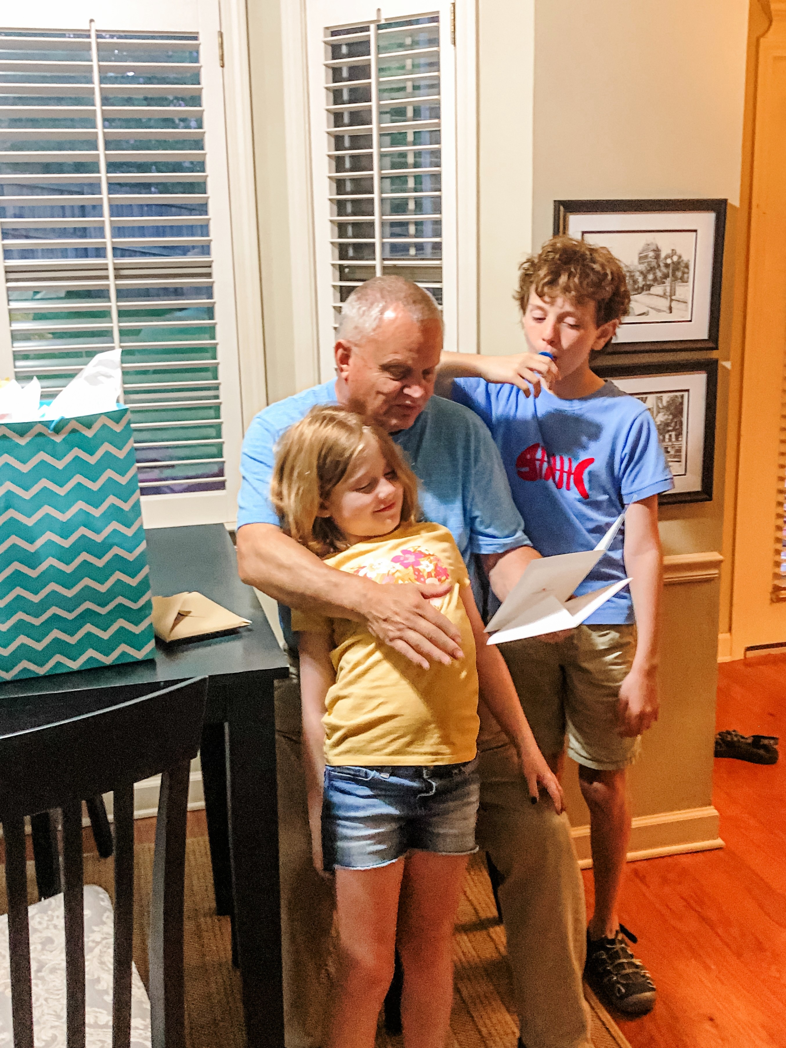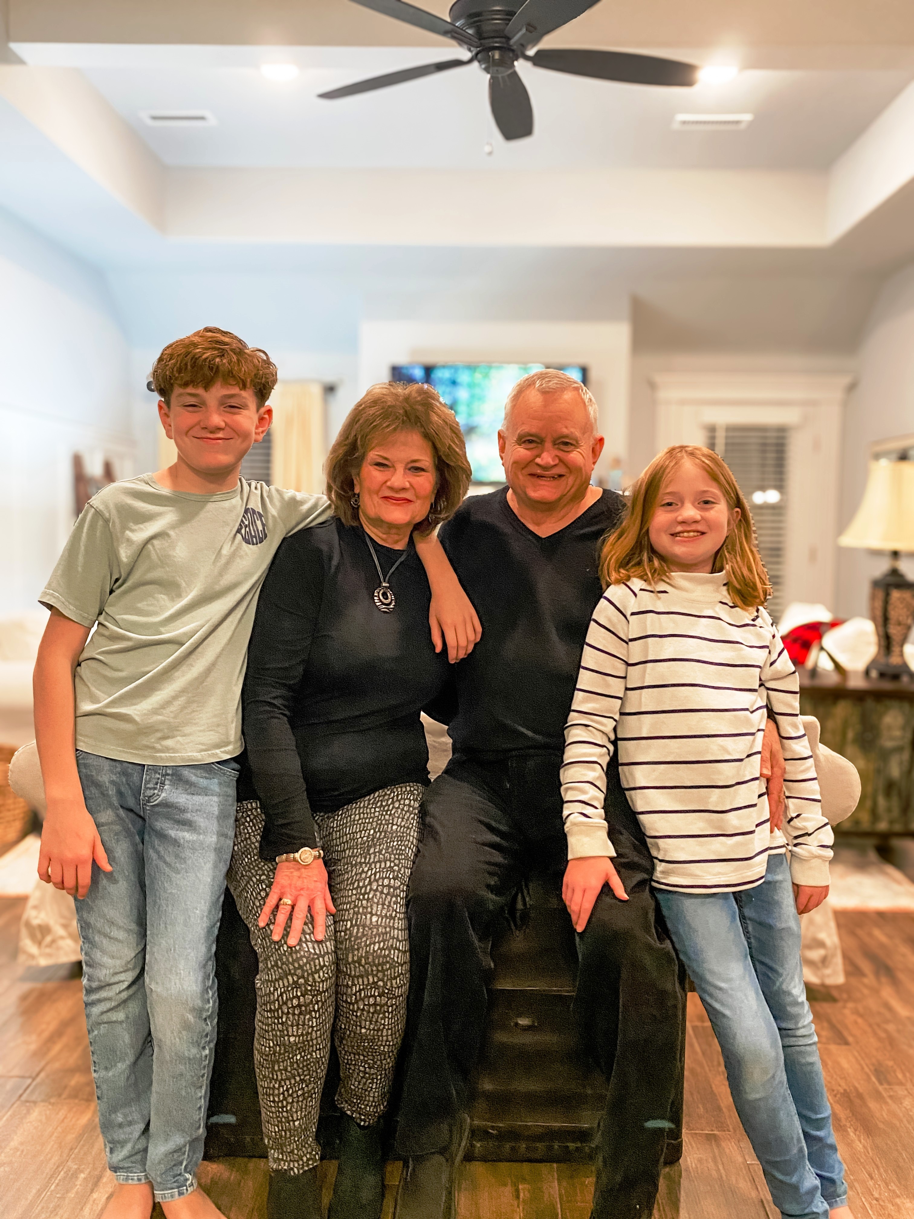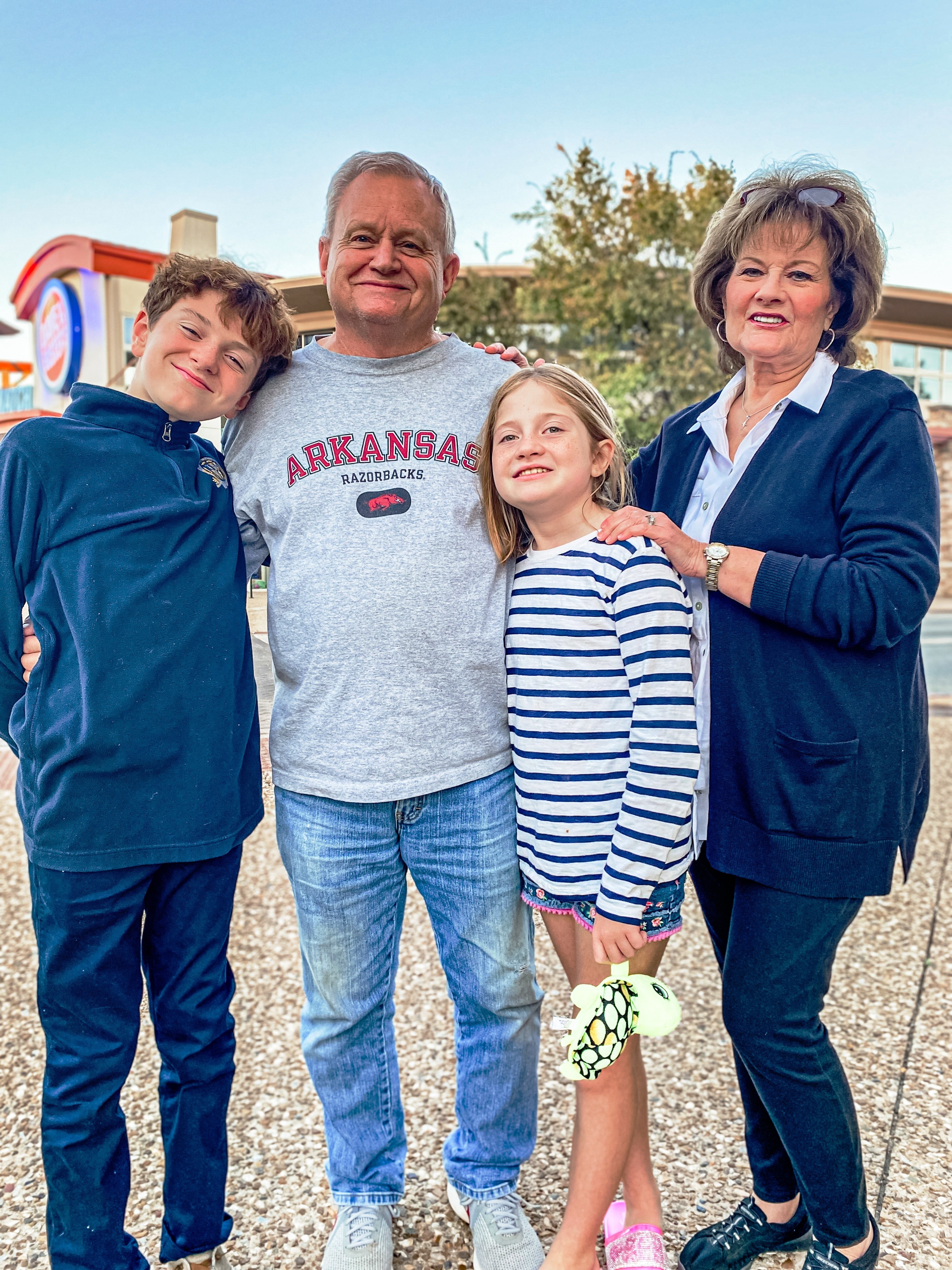 Like most grandparents, John had his own ideas about the parenting rules—handing out Oreos and Reese’s Peanut Butter Cups at dinner, and slipping phones connected to YouTube and games under the dinner table or in the bed late at night. He loved the kids fiercely, and wanted to spend his days with them. After the grands moved to Fayetteville in 2022, he and Janet soon followed, moving permanently in the fall of the same year. During his two years there, he was at every school play, every birthday, and every event, including Jack’s regatta in Kansas City. He spent many trips running the kids to and from school or to youth group on Wednesday night, buying drive-thru dinners and shakes, and sitting for hours at the homework table—all while feeding the kids Oreos and Fruit Gushers right before sending them home for dinner. When they weren’t at his house, he would text them, usually in the “Family Entertainment” texting group, to tell them a corny joke, to share a scripture, or to ask them about their day. John’s family started a tradition several years ago, ending texts with “love you, proud of you.” John never failed to say those five words to Jack and Harper, or to all of us in Family Entertainment.