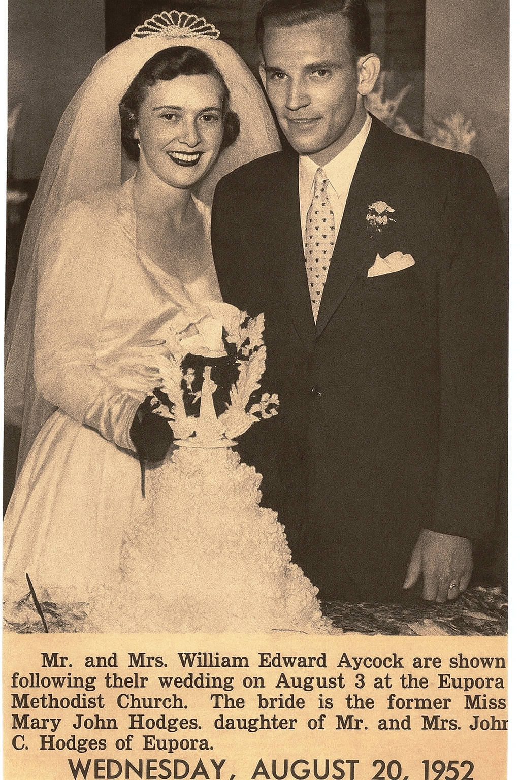 Mary John Hodges Aycock was born December 15, 1934 in Eupora, Mississippi to John Calvin and Lorene Phillips Hodges. She passed away November 17th, 2025.