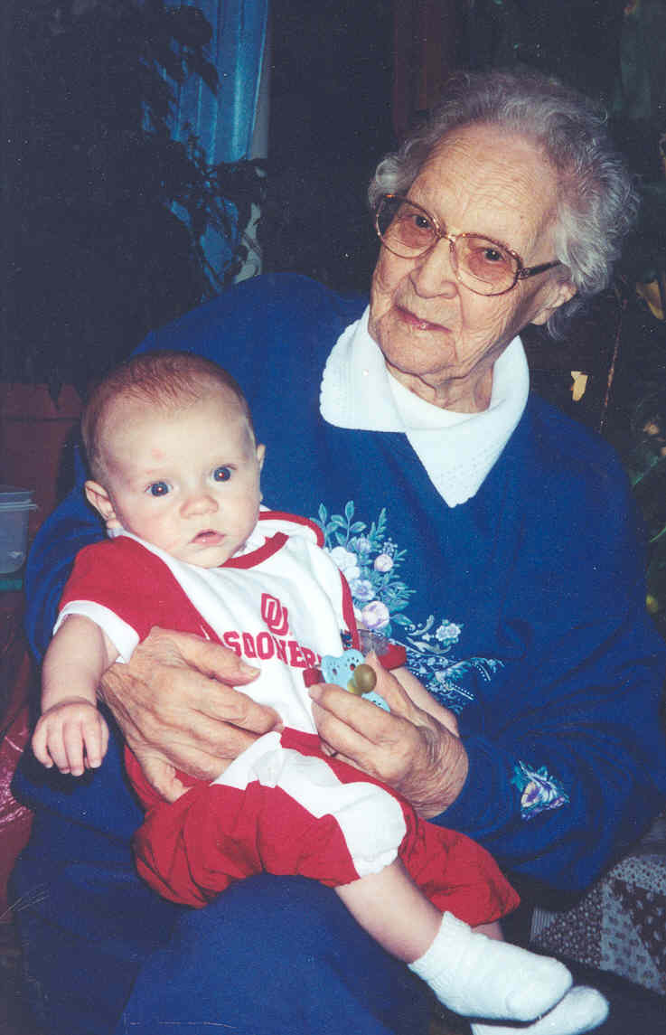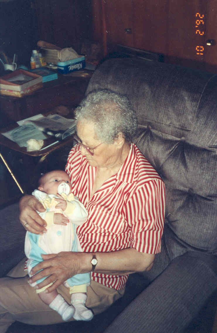 My Gran was one special lady. I was her first grandchild and the only for 9 years. SHe and I took many trips. To Texas,Mo and city in Co. I only rember 3 places she was unable to visit . Everywhere else she was able to come and visit and stay awhile. We had more fun getting lost finding our way home . She never critized you because you took the wrong turn. The opposite she would laugh and sy there is no hurry. I will always miss her . But I know now she has no worries and she is walking on the streets of gold filling my grand father in on all that he missed with his family. My Gran earned her place in heaven and I am glad she is now there. Love you Gran till I see you again.