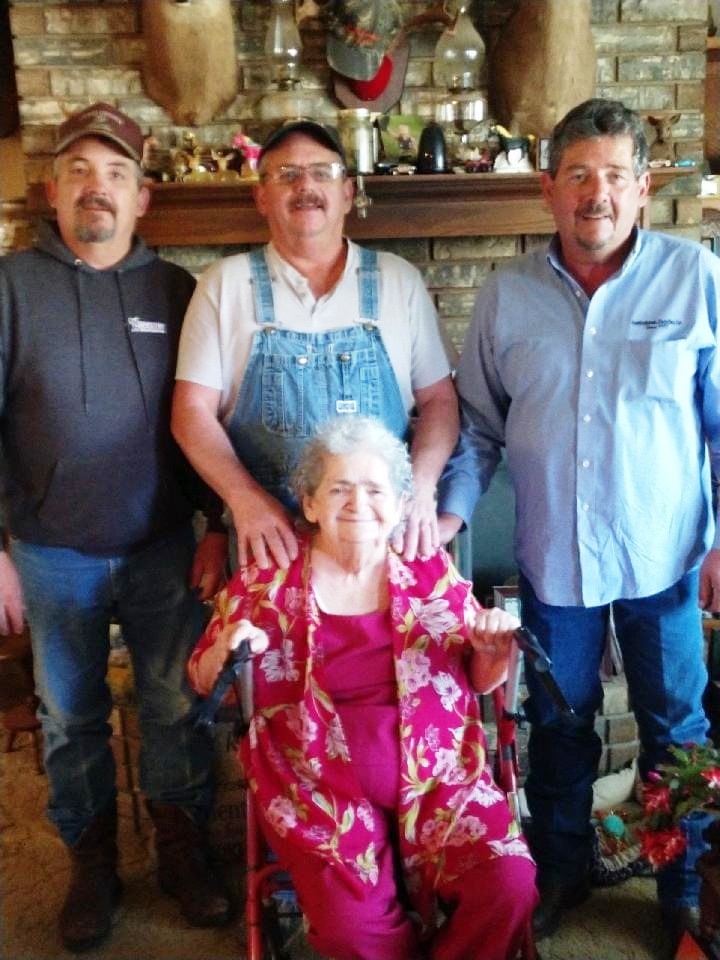 Survivors include five children Debbie Mallinson (Richard) of Kingsville, Missouri, Cecil Kirby (Tina) of Springfield, Missouri, Chip Kirby (Annette) of Elkins, Arkansas, Danny Kirby (Kelly) of Evansville, Arkansas, and LeAnna "Scooter" McClung (Ricky) of Prairie Grove, Arkansas; one sister Ruby Price of Houston, Texas; fourteen grandchildren Amanda Lockhart, Rosealee Charlton, Stephanie Lockhart, Jamie Mallison, Cecil Kirby Jr., Cecilia Kirby, Lexie Kirby, Jordan Brooks, Doug Kirby Jr., Michelle Billbe, Dustie Kirby, Danny Joe Kirby Jr., Jennifer Ward, and Afton McClung and twenty-two great grandchildren.